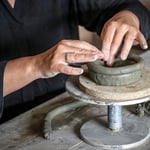 I vår ateljé arbetar vi med stengodslera. Fördelen med stengods är att det brända godset är mycket slitstarkt.